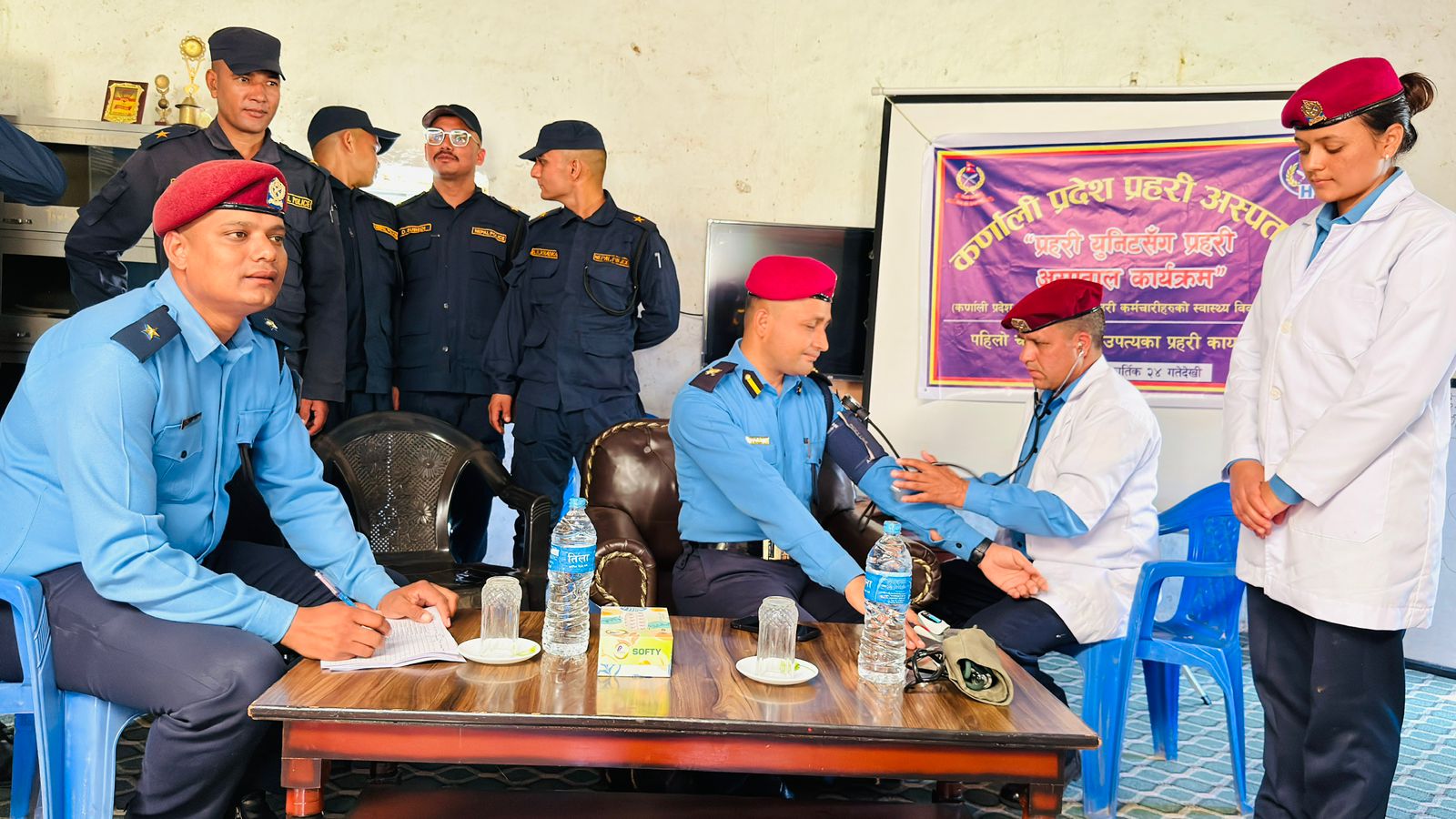 स्वास्थ्य परीक्षणमा ३८ जना महिला र १९१ जना पुरुष गरी जम्मा २२९ जना प्रहरी कर्मचारी सहभागी भएकाे कर्णाली प्रदेश प्रहरी अस्पतालले जनाएको छ। कार्यक्रमको प्रारम्भमा अस्पताल प्रमुख डा. लौडारीले सहभागी प्रहरीहरूलाई स्वास्थ्य र खानपानमा ध्यान दिने, मादक पदार्थ र सुर्तीजन्य वस्तुबाट टाढा रहने तथा मानसिक तनाव व्यवस्थापन सम्बन्धी परामर्श प्रदान गरेका थिए।